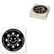 Round winter holiday return address ink rubber stamp featuring a cute, happy snowflake, and your name and address in a bold, font around it.