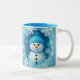 This charming mug features a cute, happy snowman face design, perfect for sipping your favorite hot chocolate, tea, or coffee all winter long. The adorable design is set against a festive, winter-blue background and is fully personalized, allowing you to easily add a name or a fun custom message like "Grandma's Hot Cocoa" or "Merry Christmas."