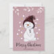 Cute Happy Snowman Pink Christmas Holiday Card