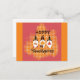 Wish your family and friends a very happy Thanksgiving this fall with this cute postcard featuring a chequered pattern and three gnomes holding a pumpkin, pie, and an autumn leaf!