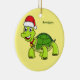 Cute happy tortoise wearing Santa hat Ceramic Tree Decoration