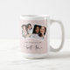 Cute Happy Valentines Day Photo Mug for your bestie! - Design features a textured soft pink background with two photographs of your choice and the text 'Happy Valentines Day BEST-TEA' in elegant calligraphy script. Simply personalise by adding name/s.
