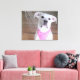 Cute Happy White Dog With Soulful Eyes In Pink Canvas Print