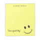 A cute yellow happy face. Show how happy you are with this big happy face with a huge smile. The face can be moved, resized, or deleted. The background can be changed to any colour. Ready to be personalised with your name on top and the bottom says "Have a great day!" which can be changed if you want.