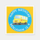 Cute happy yellow school bus personalised birthday napkin