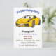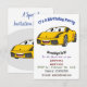 Cute happy yellow sports car cartoon invitation
