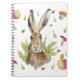 Cute hare with a background of apples and mushroom notebook