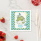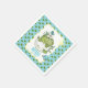 Serve up refreshments with a touch of prehistoric charm using our adorable Cute Hatching Dino Baby Shower Paper Napkins featuring a sweet baby dinosaur just peeking out from its egg, joined by a cheerful little bird. The vibrant blue background is adorned with playful green footsteps accents, perfectly complementing your dinosaur-themed baby shower.