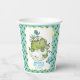 Serve up refreshments with a touch of prehistoric charm using our adorable Cute Hatching Dino Baby Shower Paper Cups! These delightful cups feature a sweet baby dinosaur just peeking out from its egg, joined by a cheerful little bird. The vibrant blue background is adorned with playful green crown accents, perfectly complementing your dinosaur-themed baby shower.