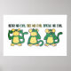 Three Wise Monkeys - Hear No Evil, See No Evil, Speak No Evil. With three cute green with blue and yellow / beige chimpanzee monkey graphics.