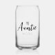 A simple and cute personalised name auntie can glass. This custom design features a doodle heart and calligraphy script font in a black and white design. Makes a great gift for the aunt in your life.