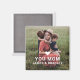 Cute HEART LOVE YOU MOM Mother's Day Magnets features your favourite photo with the text "(love heart) you Mum" in modern white script with your names below. Personalise by editing the text in the text box provided and adding your own picture. Designed by ©2022 Evco Studio www.zazzle.com/store/evcostudio