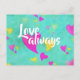 A cute original watercolor valentine pattern with pink and yellow hearts on a aqua blue background. I added text templates that say: Love always on the front and you add your own name to the back.