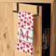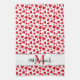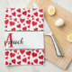 Cute Heart Pattern Red White Monogram Personalised Tea Towel