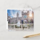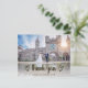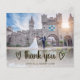 Modern budget wedding Thank You Card with a simple and cute design featuring "thank you" in a thick handwriting script, along with two hearts and your names over your favourite vertical photo. The back has a second picture and your personalised message in black over a white background.