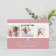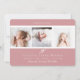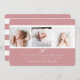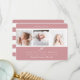 Cute doodle heart, 3-photo collage birth announcement card, on blush pink backgrounds and white stripe pattern backing.