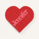 Red background with "love" patterned in coral and name diagonally centred in coral colour