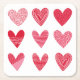 Cute hearts in red and pink square paper coaster