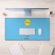 LOVE this desk mat! It's large! It fits across my desk. No need for a small mouse pad now! Color and print are excellent. Quality seems to be excellent too. Delivery was about 3 days sooner than expected. I think this is one of my favorite Zazzle products! Excellent. The color is vibrant and true to what I expected.