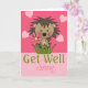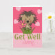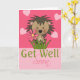 Cute little hedgehog with a pink flower on a pink heart background, above the words "get well soon" cards from Ricaso