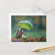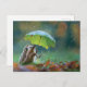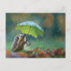 Cute hedgehog holding a leaf umbrella postcard