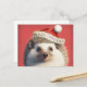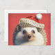 Postcard with an adorable hedgehog on a red background wearing a Santa hat.