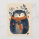 Cute Hedgehog Watercolor Woodland Animal Xmas Postcard