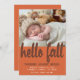 Cute Hello Fall Autumn Baby Birth Photo Announcement