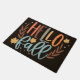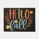 Cute brush painted typography "hello fall" theme on black. Greet your guests with a seasonal doormat for fall, Thanksgiving and Halloween.