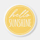 Brighten up the day with this cute magnet featuring "hello sunshine" handwritten-style typography in white on a yellow and white background.