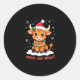 Cute Highland Baby Cow Christmas Lights Merry & Br Classic Round Sticker