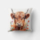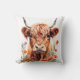 Cute Highland Cow And Poppy Flowers Watercolor Cushion