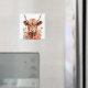 Cute Highland Cow And Poppy Flowers Watercolor Magnet