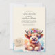 An adorable baby highland cow with floral crown is sitting at the bottom of this Holy Cow baby shower invitation. The pretty watercolor styling and script text on a cream background is just right. Call out box with Holy Call A Sweet Baby is on the Way! See coordinating items in our shop, Enchanted Finch.