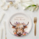 Each plate showcases an endearing Highland cow with its signature shaggy fur and sweet, friendly expression. The design is complemented by soft, pastel hues and charming accents that make these plates a delightful addition to your baby shower table setting.