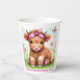 Cute Highland Cow Butterfly Girl Birthday Party Paper Cups