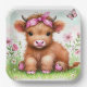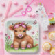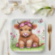 Cute Highland Cow Butterfly Girl Birthday Party Paper Plate