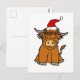 Cute Highland Cow in Santa hat Christmas Postcard