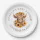 Cute Highland Cow Rustic Sunflowers Baby Shower Paper Plate