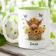 Cute Highland Cow Sunflowers Floral Butterflies Two-Tone Coffee Mug