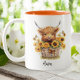 Cute Highland Cow Sunflowers Floral Personalised Two-Tone Coffee Mug