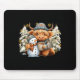Cute Highland Cow With Snowman Hot Cocoa Christmas Mouse Pad