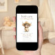 Cute Highland Holy Cow Having a Baby. Available digitally and printed. Farm cuteness for your baby shower. Easily personalise the text as required and change the text and background colours if you wish via the edit further option. With a sweet highland cow wearing a straw hat illustration.