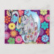 Cute Hippie Elephant with Colourful Flowers Postcard