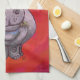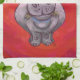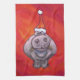 Cute Hippo in Santa Hat on Red Tea Towel