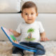 Cute baby t-shirt featuring a cute hippo reading a book. You can customise this design with your or your loved one's baby name, or remove the name by clicking "Personalise this template" button. Perfect gift for baby shower and birthday.