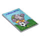 Wild Animal League Hippo Soccer Player Notebook created by ITD Sports Centre features our original art by Traci Van Wagoner of a fun, whimsical hippo wearing a green and yellow soccer uniform and kicking a black and white soccer ball on the green grass against textured blue sky. Your kids will get a kick out of this cute hippo soccer star notebook where they can keep track of all their ideas and notes.. Hippo lovers and soccer lovers, join the Wild Animal League and buy a Hippo Soccer Star today. It's all fun and games at Imagine That! Design Sports Centre!