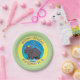 Cute hippo with bird personalised birthday cartoon paper plate