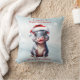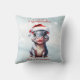 Cute Hippopotamus Santa Hat Snowy Christmas Cushion