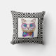 Cute Hipster Cat on B&W Chequerboard Cushion
